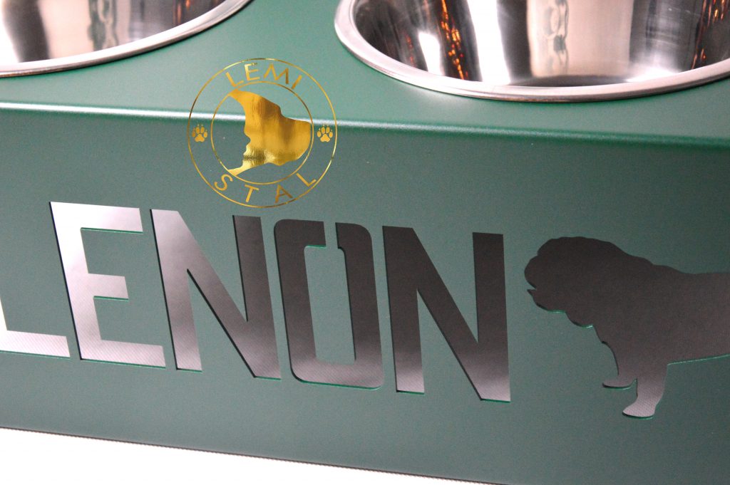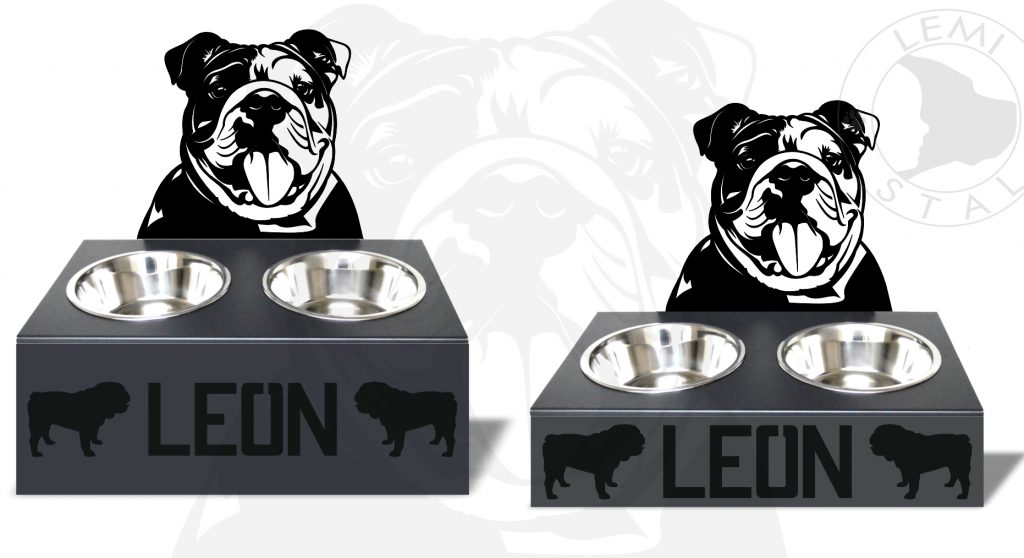 Stojak na miski dla psa z motywem Buldoga Angielskiego