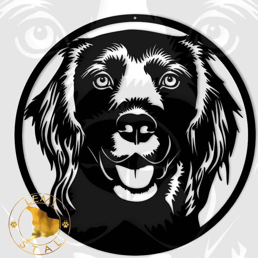 Metalowy obraz Munsterlander zostanie precyzyjnie wycięty laserowo ze stali o grubości 1,5 mm następnie pomalujemy go proszkowo na wybrany przez Ciebie kolor.