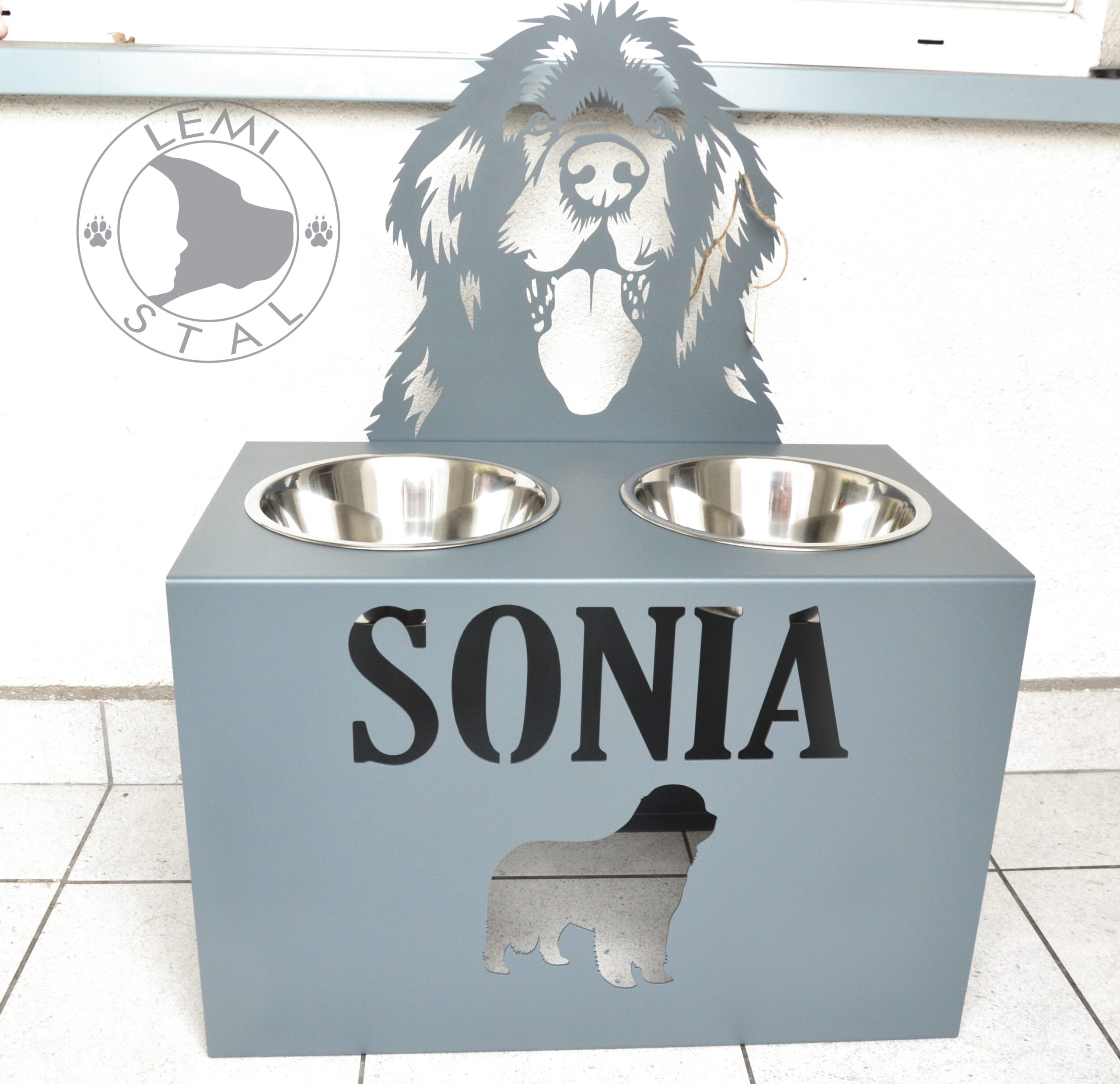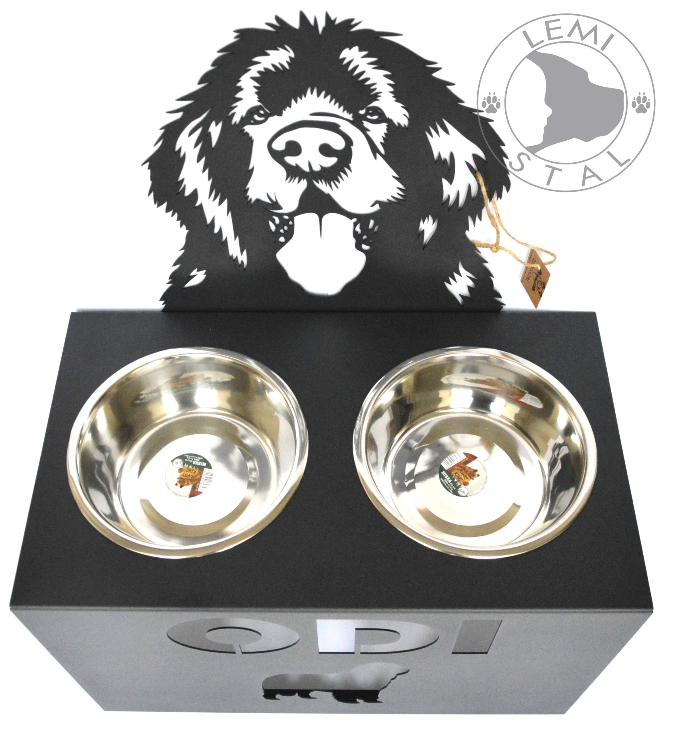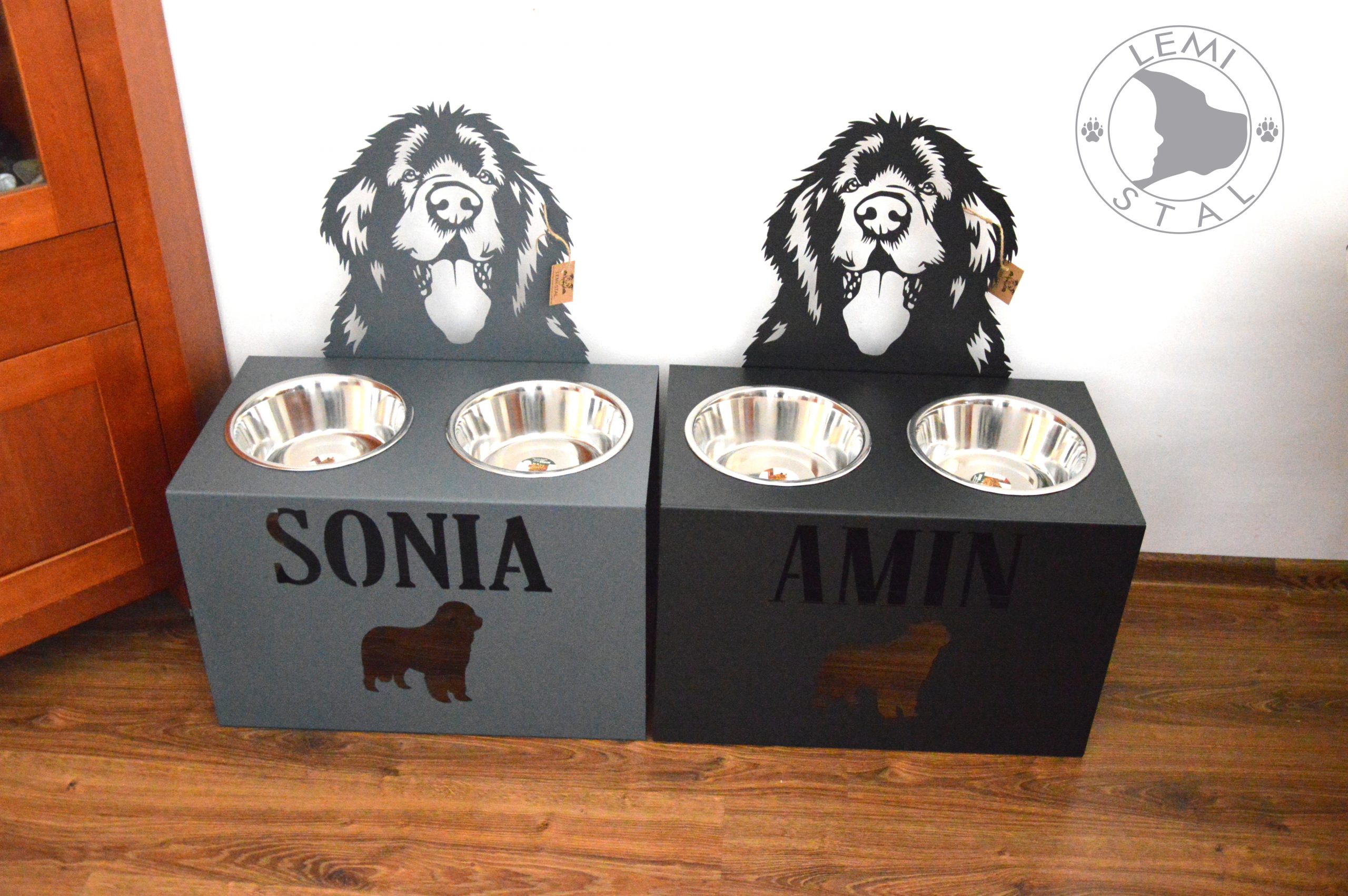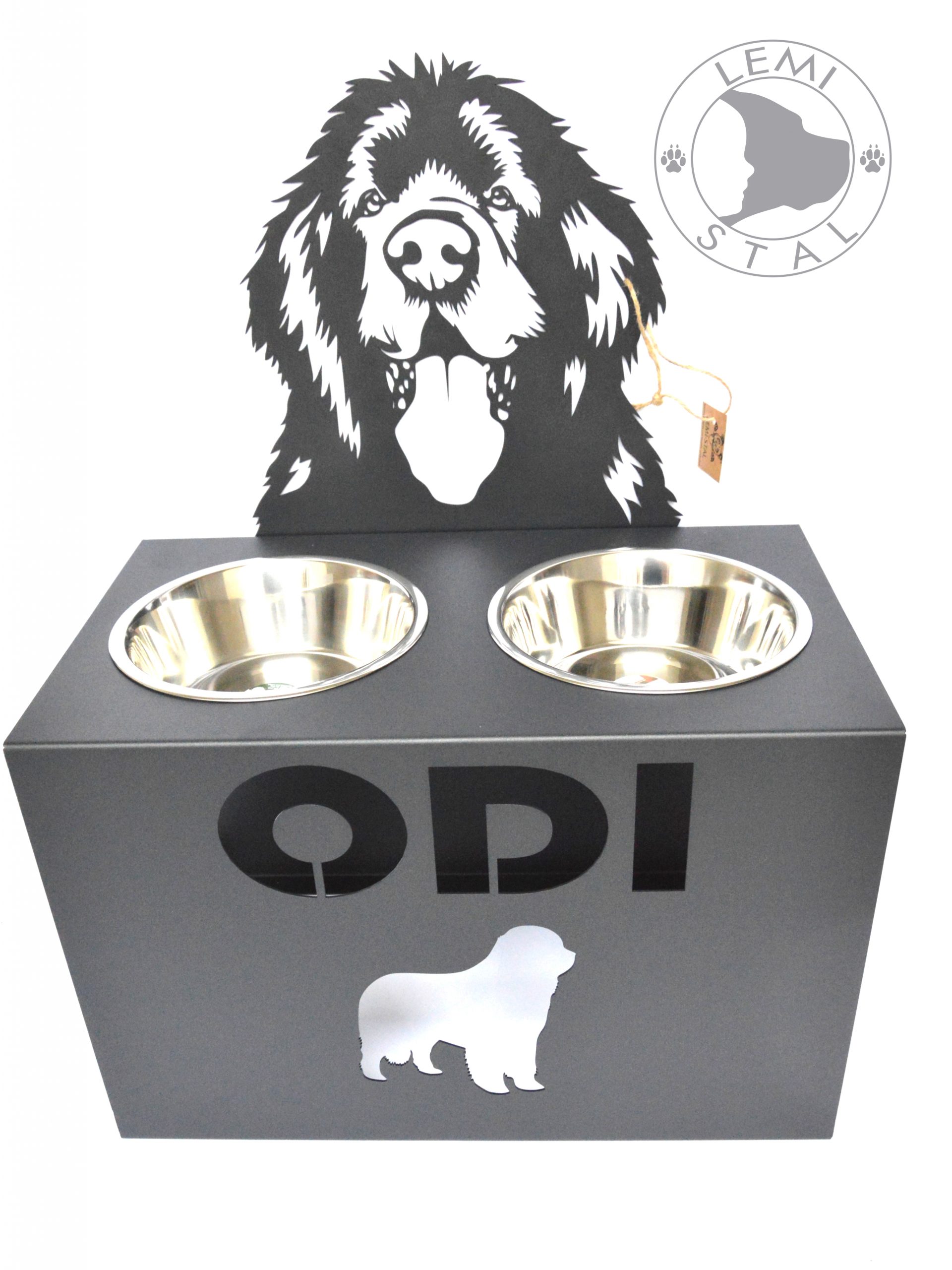 Nowofundland Stojak na miski dla psa z motywem Nowofundlanda Personalizowany bufet z imieniem