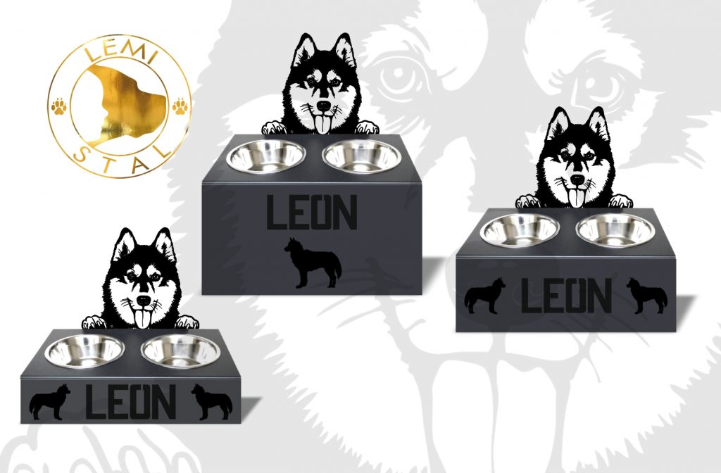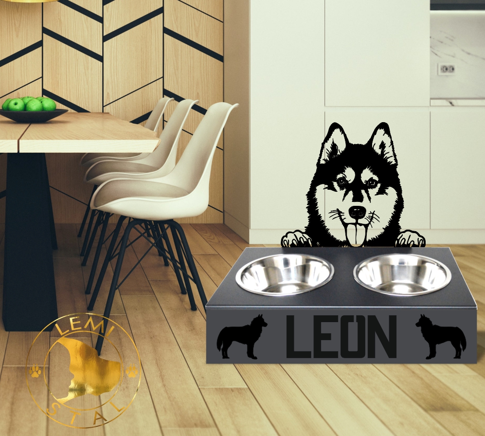 Stojak na miski dla psa z motywem HUSKY