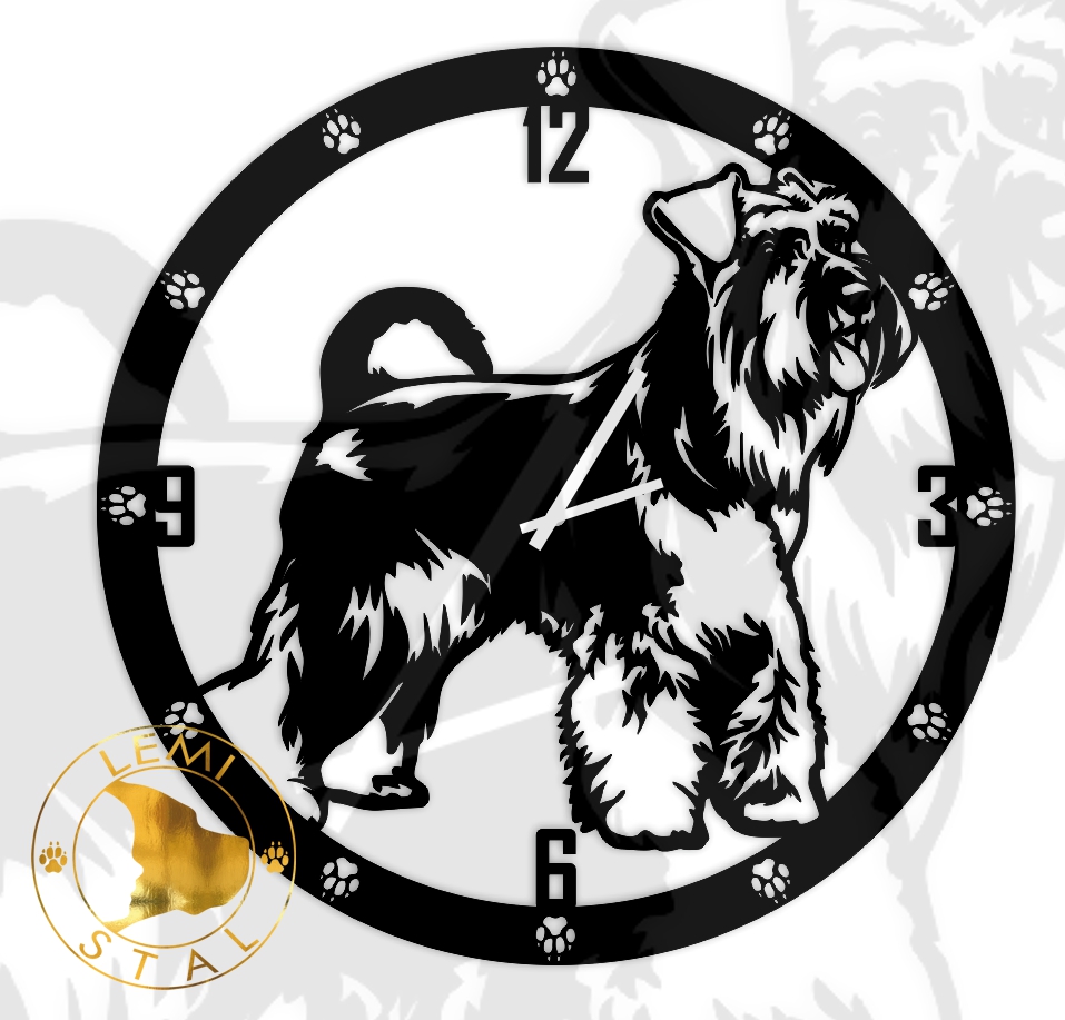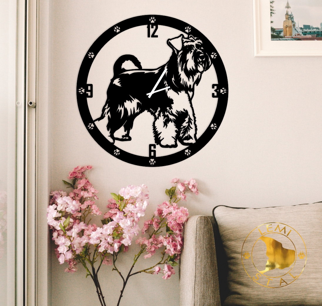 Udekoruj swoje mieszkanie wyjątkowym metalowym zegarem z motywem Sznaucera.