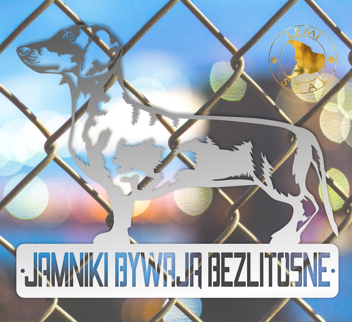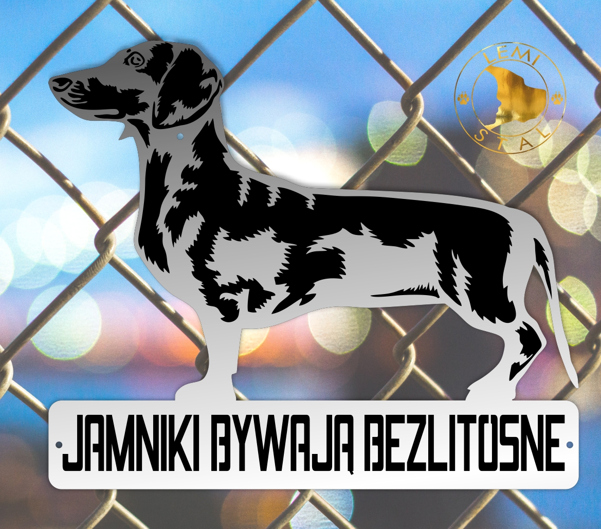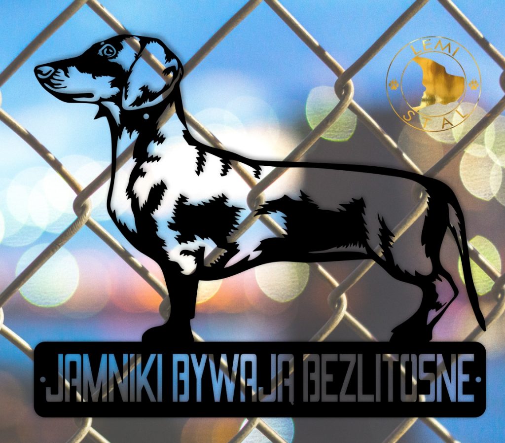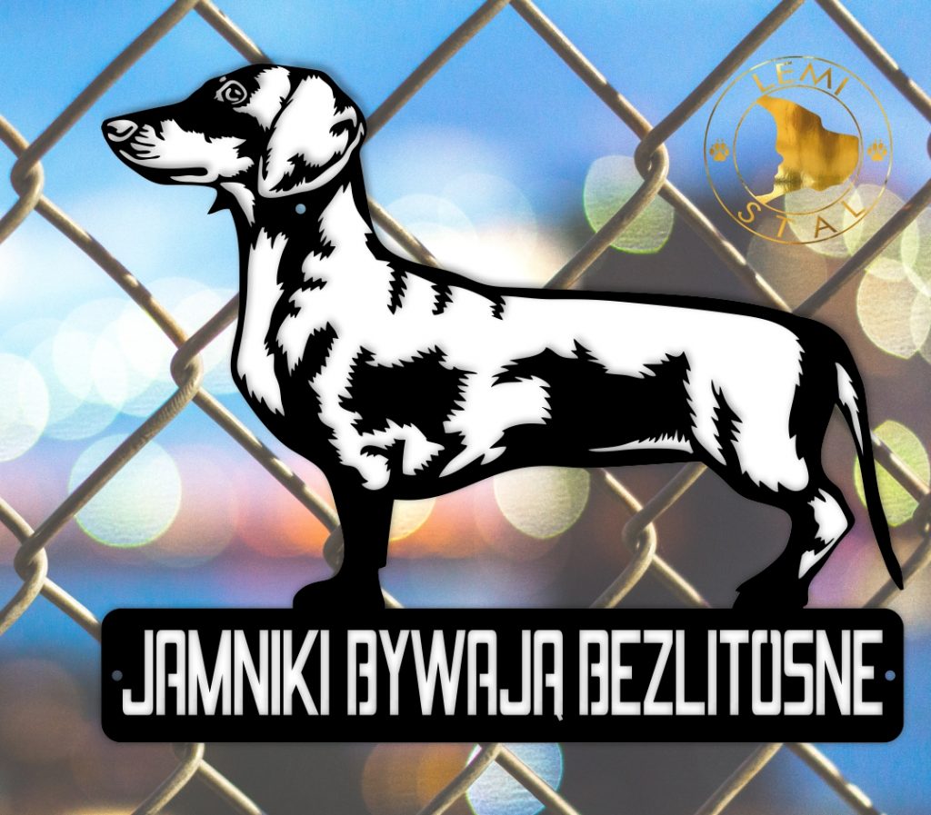 Tabliczka Uwaga Jamnik – śmieszna – własny tekst