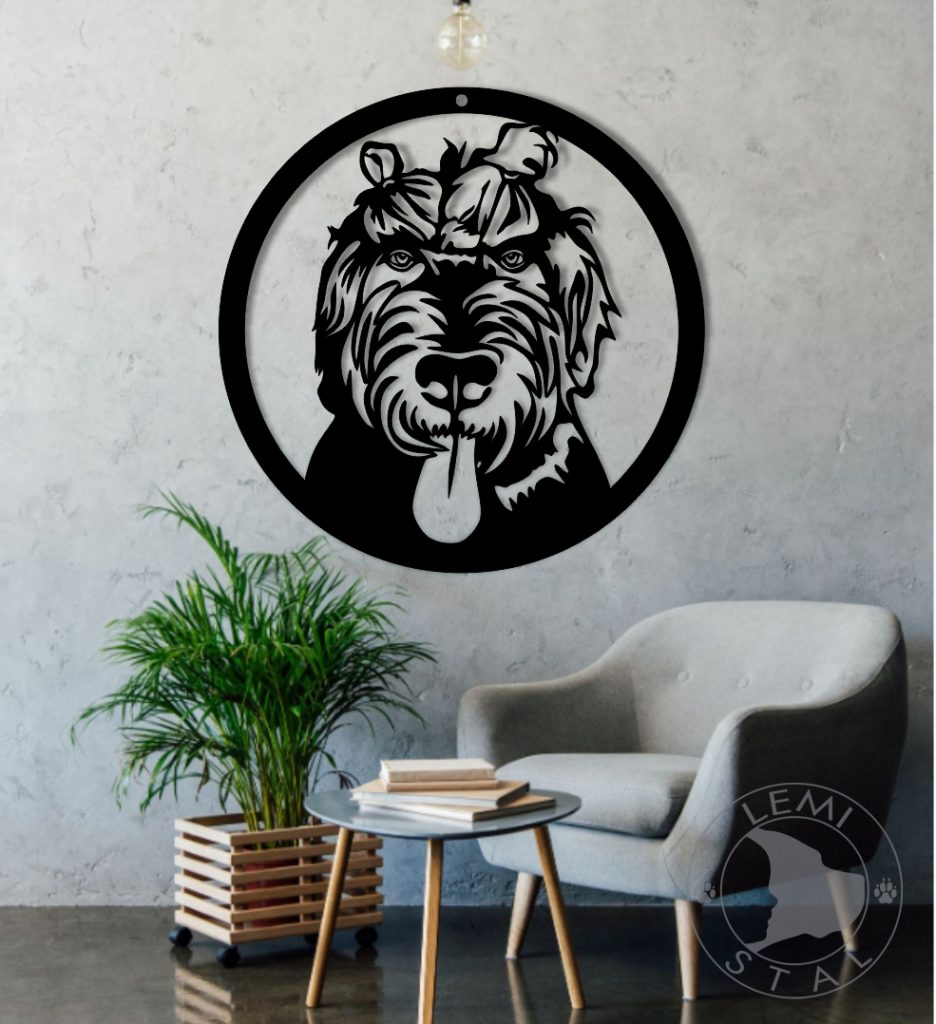 Terier Rosyjski metalowy obraz z Motywem Czarnego Teriera